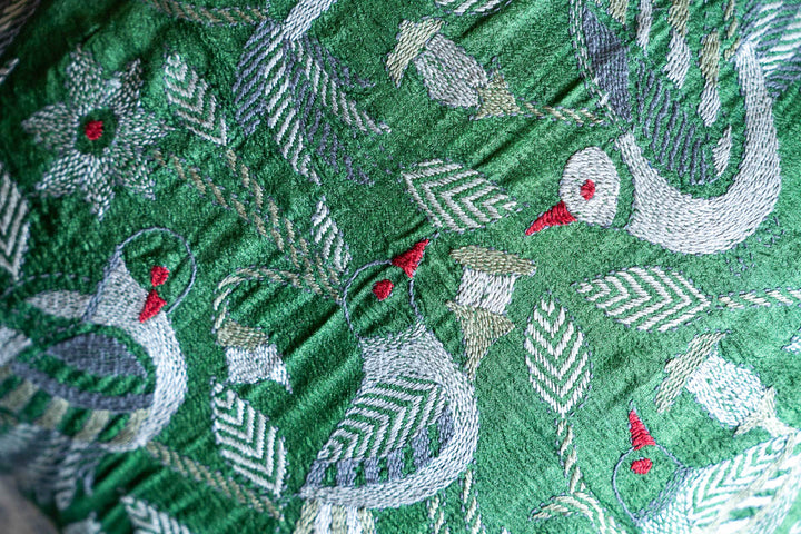 Elevate your home's charm with the intricate beauty of Kantha stitch silk cushion covers, blending tradition with timeless style. Experience the art of slow craftsmanship , bringing warmth and sophistication to your home.
